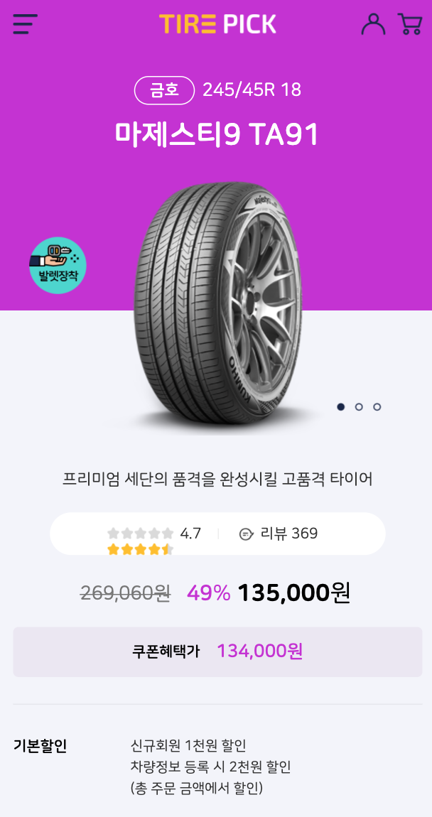- 금호타이어 마제스티9 가격 134,000원(쿠폰혜택가)