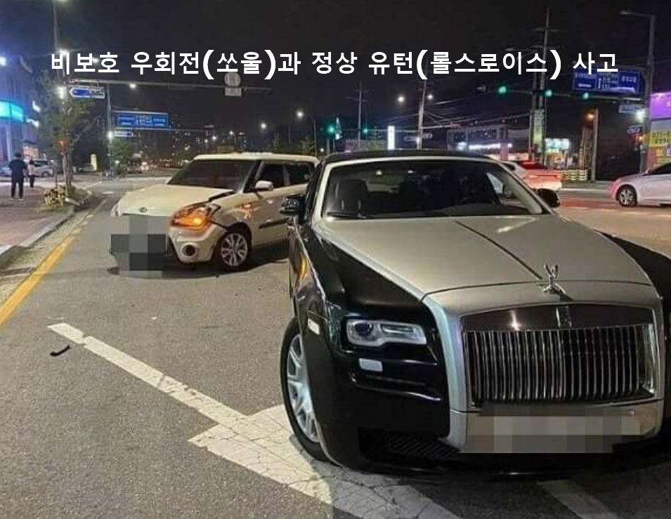 우회전시 정상 우턴하는 롤스로이스와 사고가 났습니다.