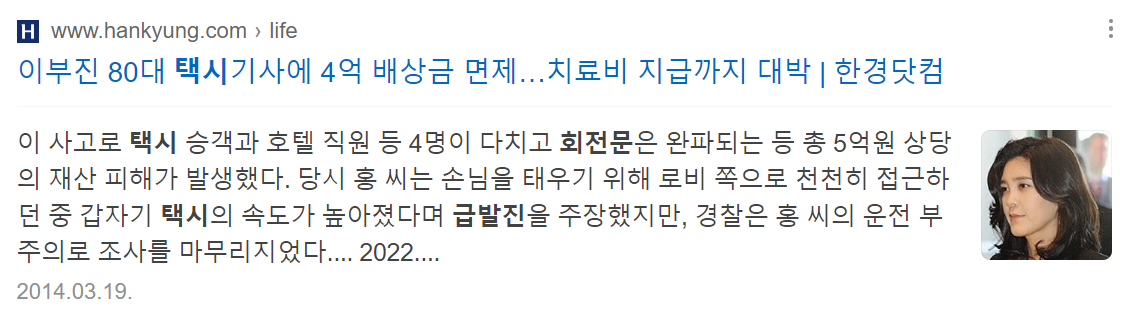 2) 택시 급발진 사고로 인한 호텔 로비 수리비