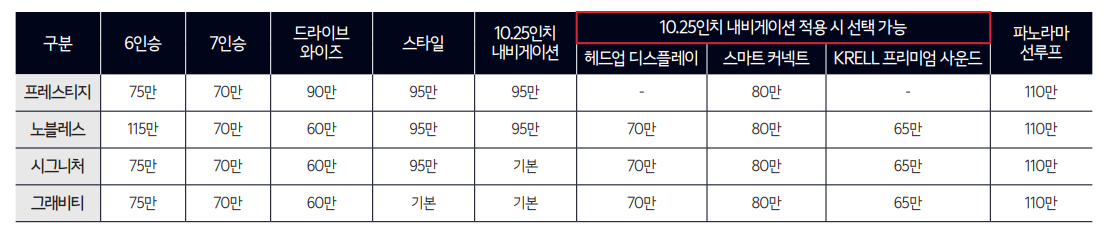 | 시그니처 7인승 | 4245만원 | ||