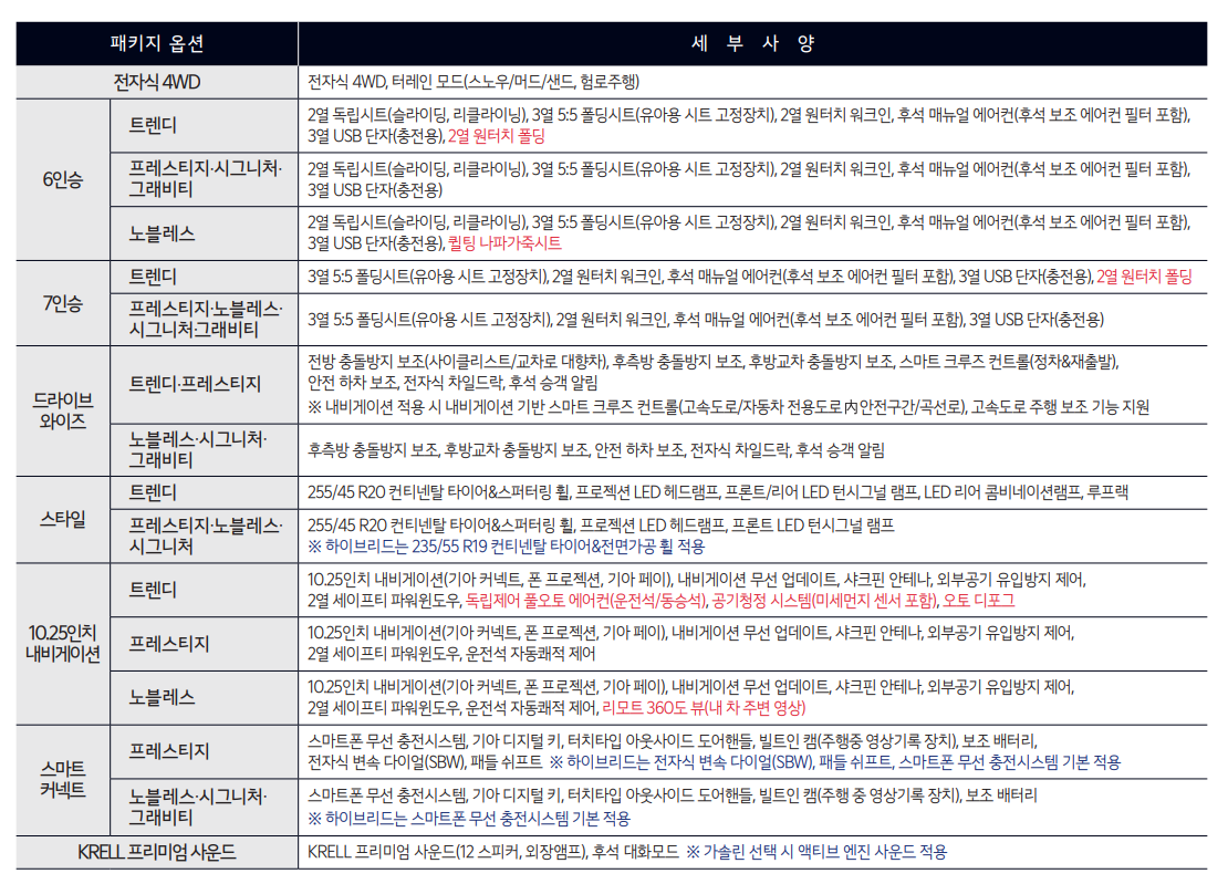 | 쏘렌토 하이브리드 4WD | 프레스티지 5인승 | 3971만원 | |