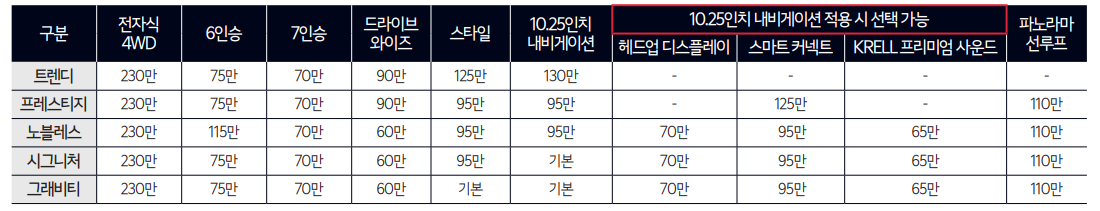 | 그래비티 7인승 | 4334만원 |