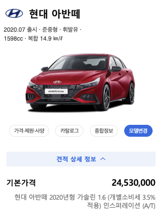 아반떼 최고 등급인 인스퍼레이션 가격이 2450만원이니, 가격차이가 커보이는데요.