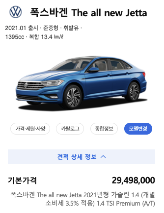 폭스바겐 제타 2021 가격