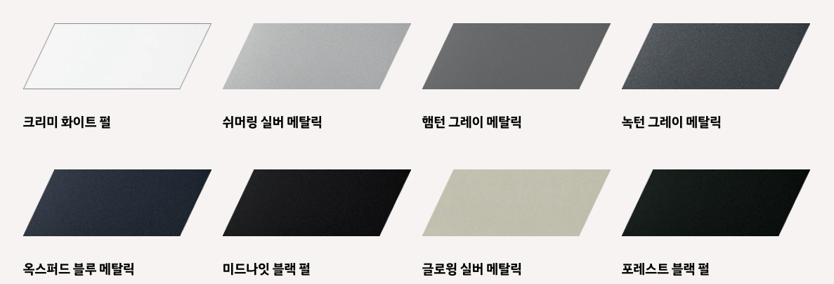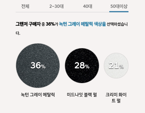 40대는 크리미 화이트 펄이 가장 인기가 좋고, 50대 이상에선 녹턴 그레이 메탈릭이 인기가 좋습니다.