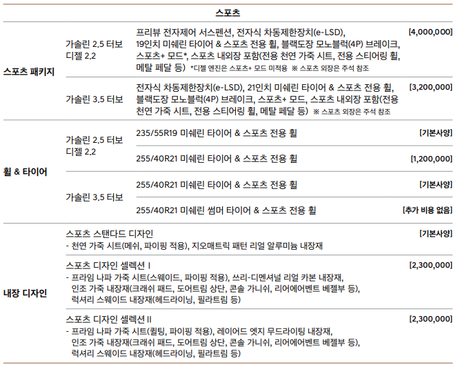 보통의 현대차가 등급과 옵션으로 장난을 쳤다면, 제네시스 GV70 가격표를 보면 많이 줄어들었다는 것을 알 수 있습니다.
