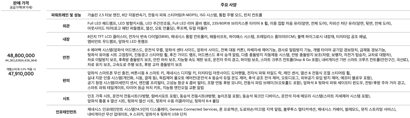 - GV70 가솔린 2.5 터보 가격 : 4791만원