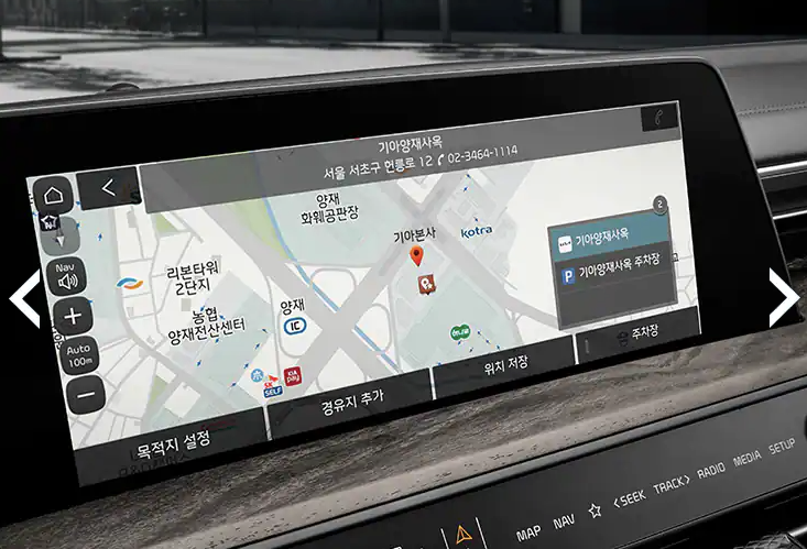 내비게이션 기능은 기본이고 차량의 모든 엔터테인먼트 장비 및 설정을 이 화면이 책임지죠.
