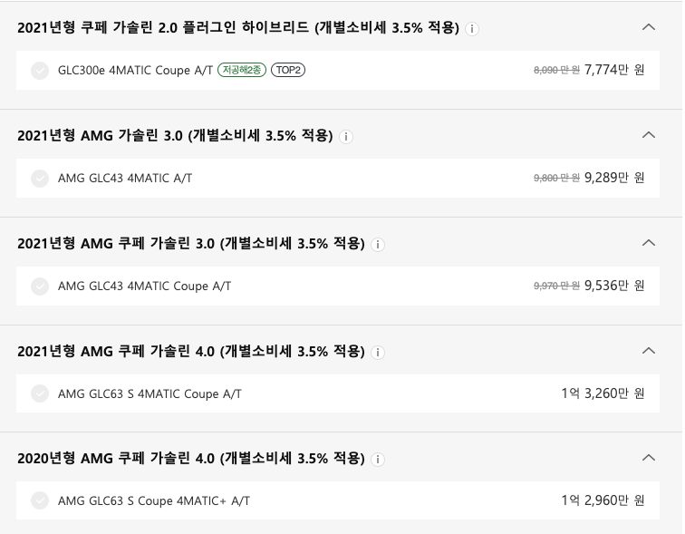 - GLC300 쿠페 : 8140만원(할인시)
