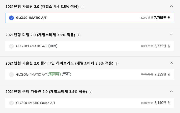- GLC300 쿠페 : 8140만원(할인시)