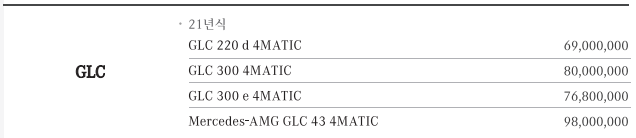 - GLC 220d : 6900만원