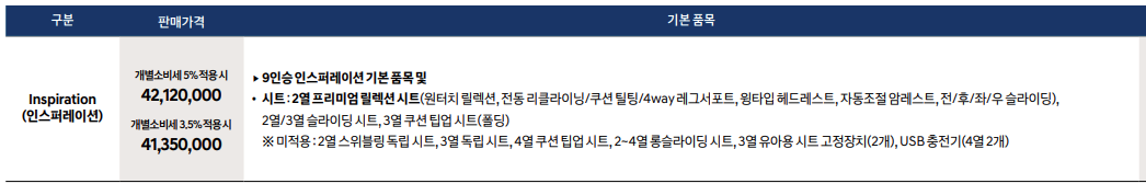 - 라운지 9인승 인스퍼레이션 : 4048만원