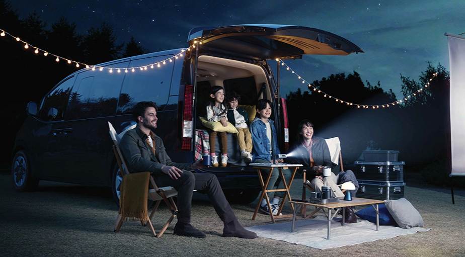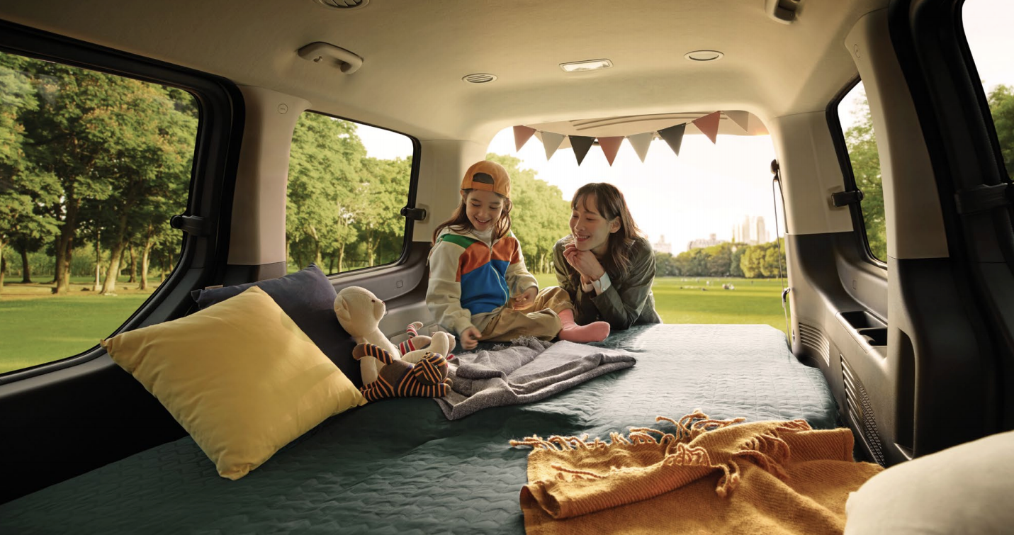 또 업무 후에는 아이와 함께 같이 캠핑, 레저용으로 사용할 수 있는 다목적 차량임을 강조하고 있어요.