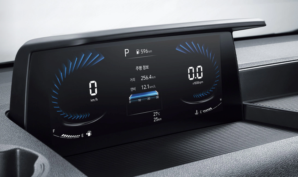기존의 계기판과 다르게 사이버, 미래 지향적, 역동적인 계기판이 눈에 띄네요.