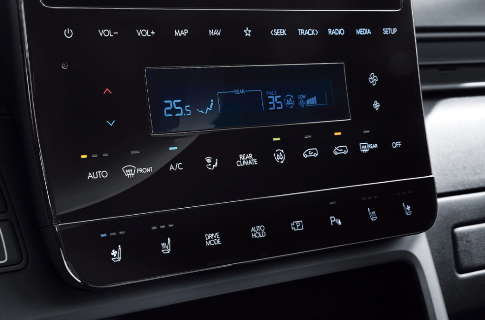 그 아래에는 풀터치 조작이 가능한 에어콘, 히터 공조장치 버튼이 있습니다.