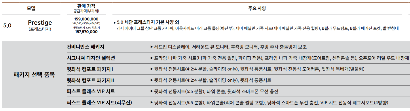 - G90 가솔린 5.0 프레스티지 리무진 : 1억 5757만원