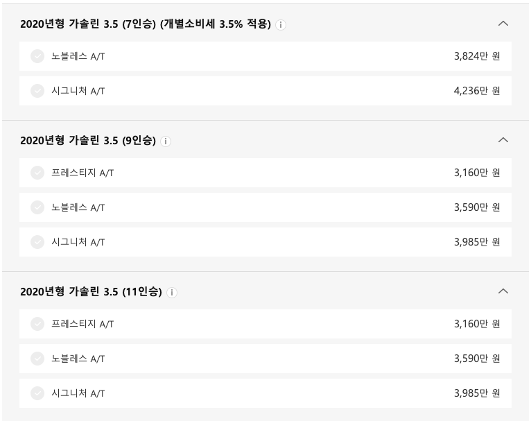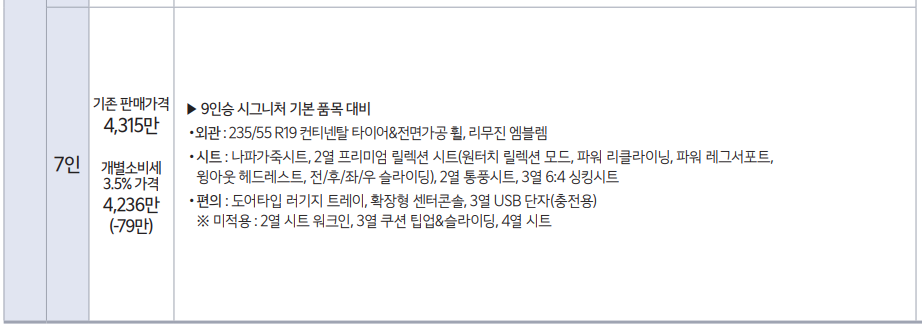 - 가솔린 3.5(7인승) 시그니처 : 4236만원