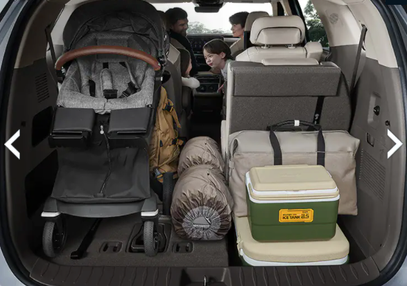 4열 시트를 접으면 넉넉한 공간이 나와서 유모차를 접지 않은 채로 싣을 수도 있죠.