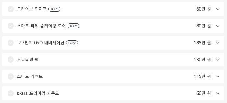 2021 카니발 인기옵션 3가지