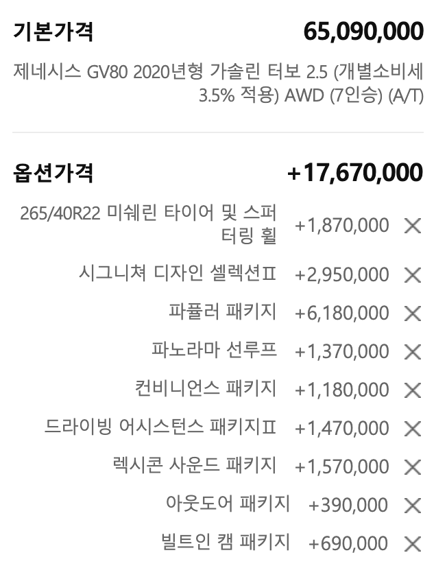 여기에 모든 옵션을 더하면 1767만원이 추가됩니다.