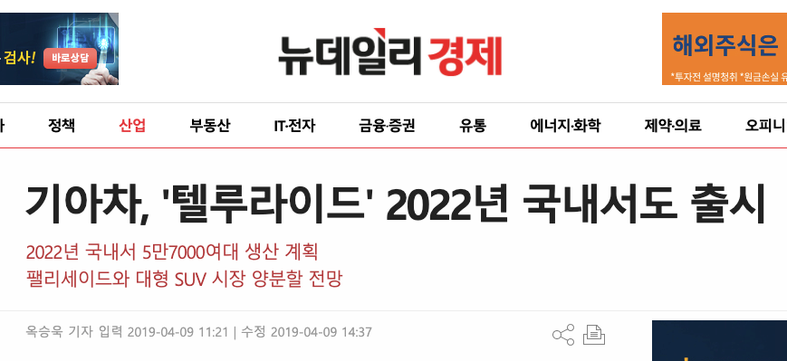 2021 기아 텔루라이드, 국내출시 가능성은?