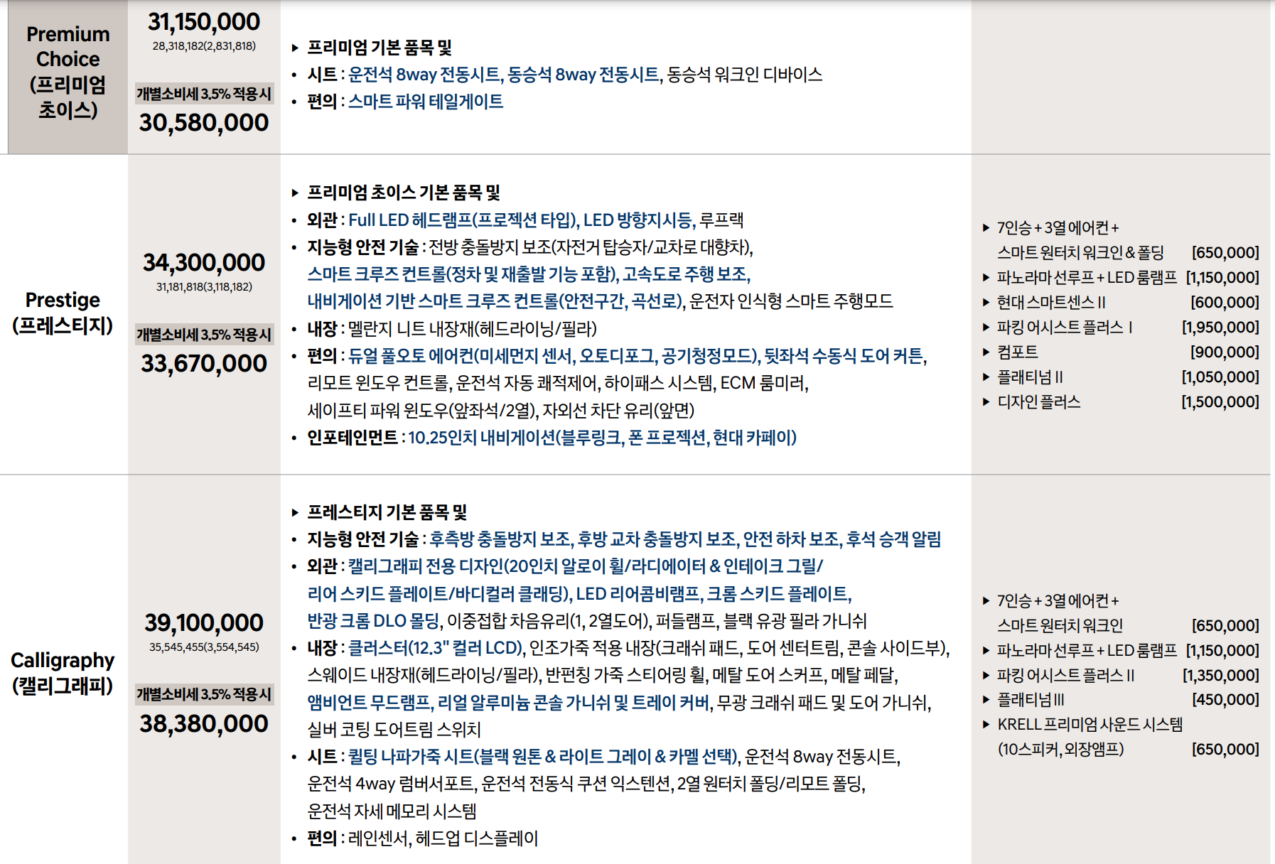 - 프레스티지 : 3367만원(디젤 3517만원)
