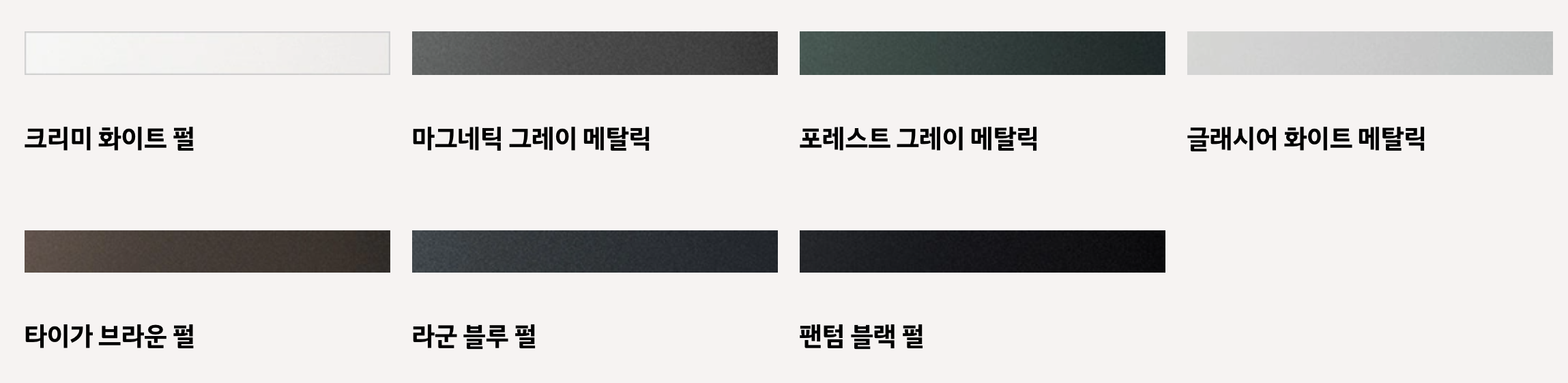 크리미 화이트, 마그네틱 그레이 메탈릭, 라군 블루 펄인데요.