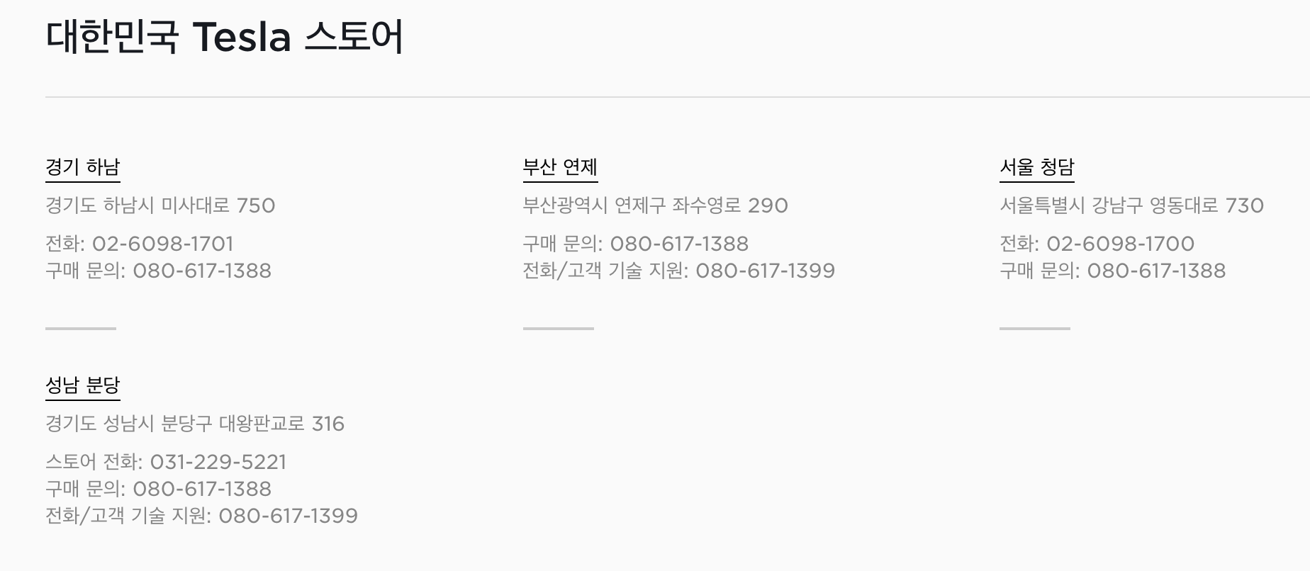 전국 테슬라 스토어 리스트는 아래를 참고해주세요.