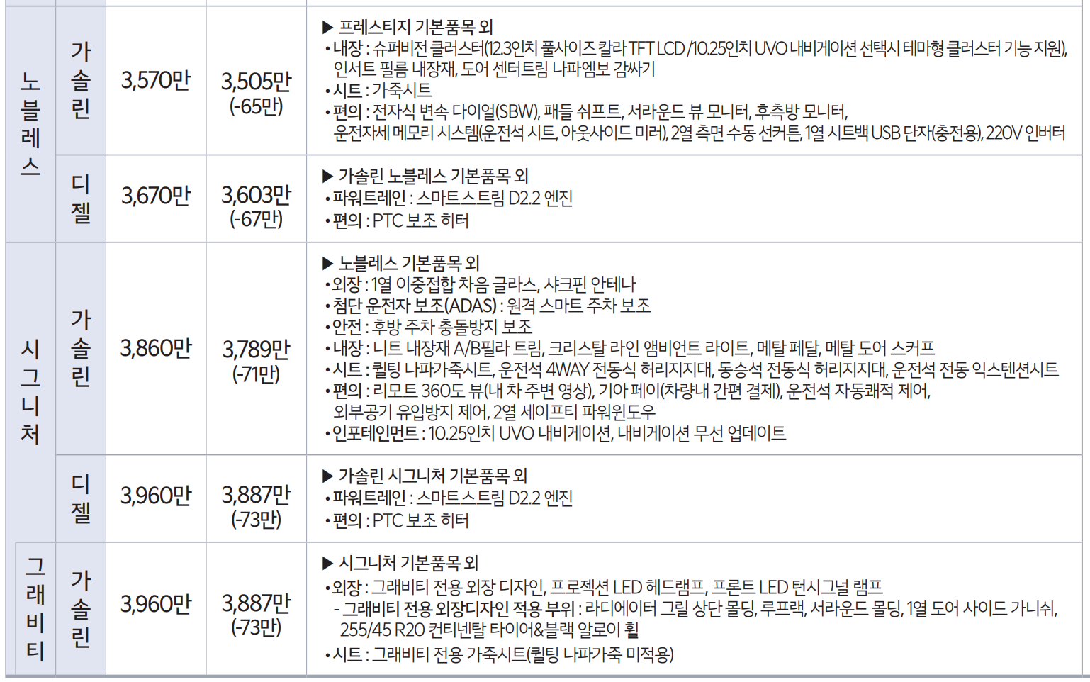 - 시그니처 가솔린 : 3789만원