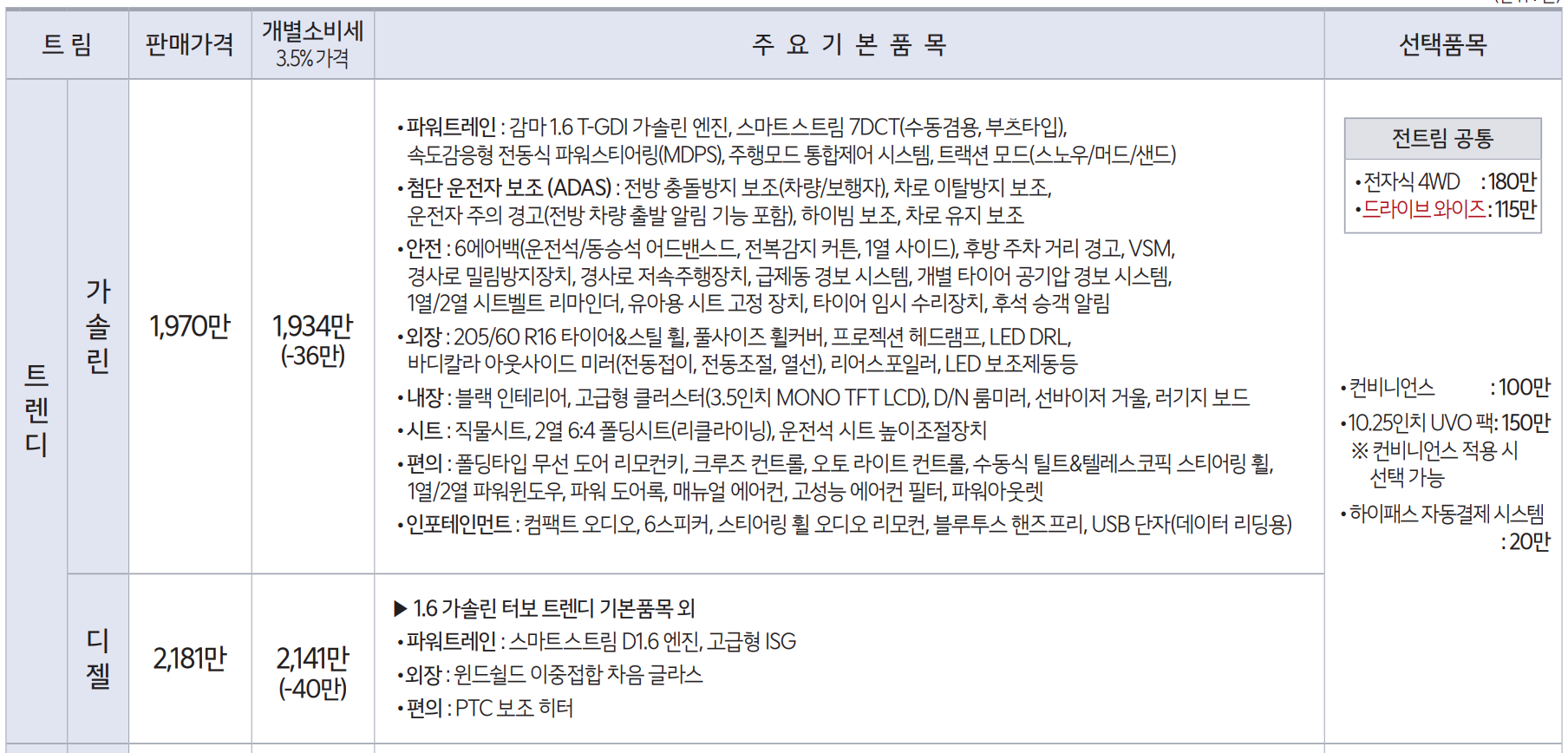 - 트랜디 디젤 : 2141만원