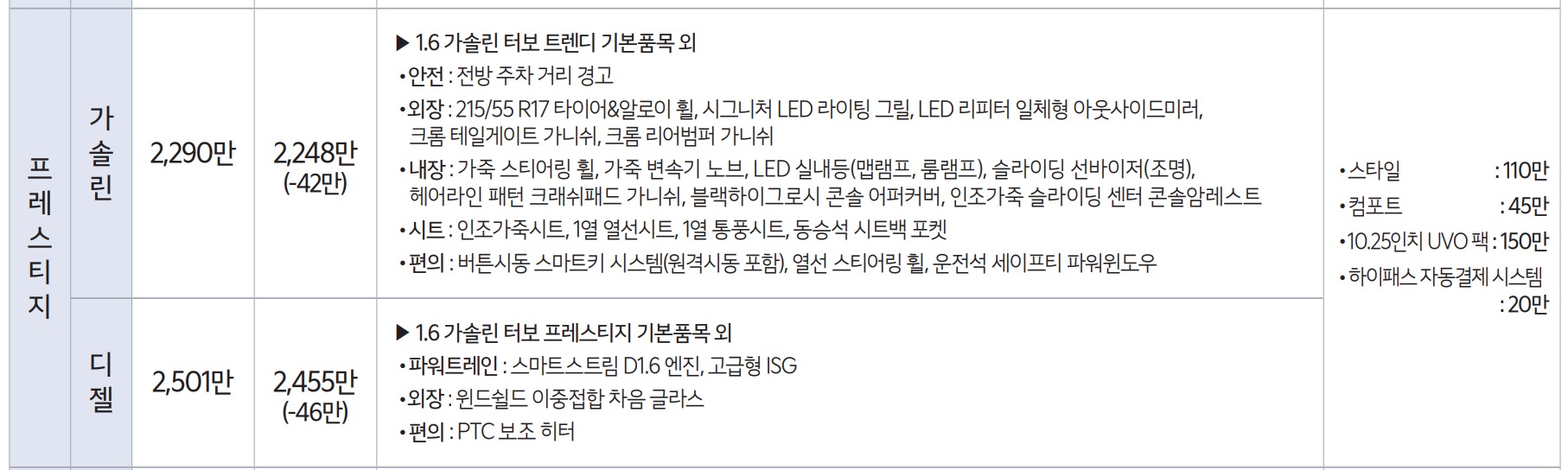 - 프레스티지 디젤 : 2455만원