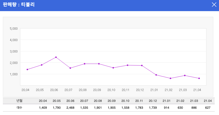 아래 그래프를 보면 셀토스와 티볼리 판매량 차이가 확 눈에 보입니다.