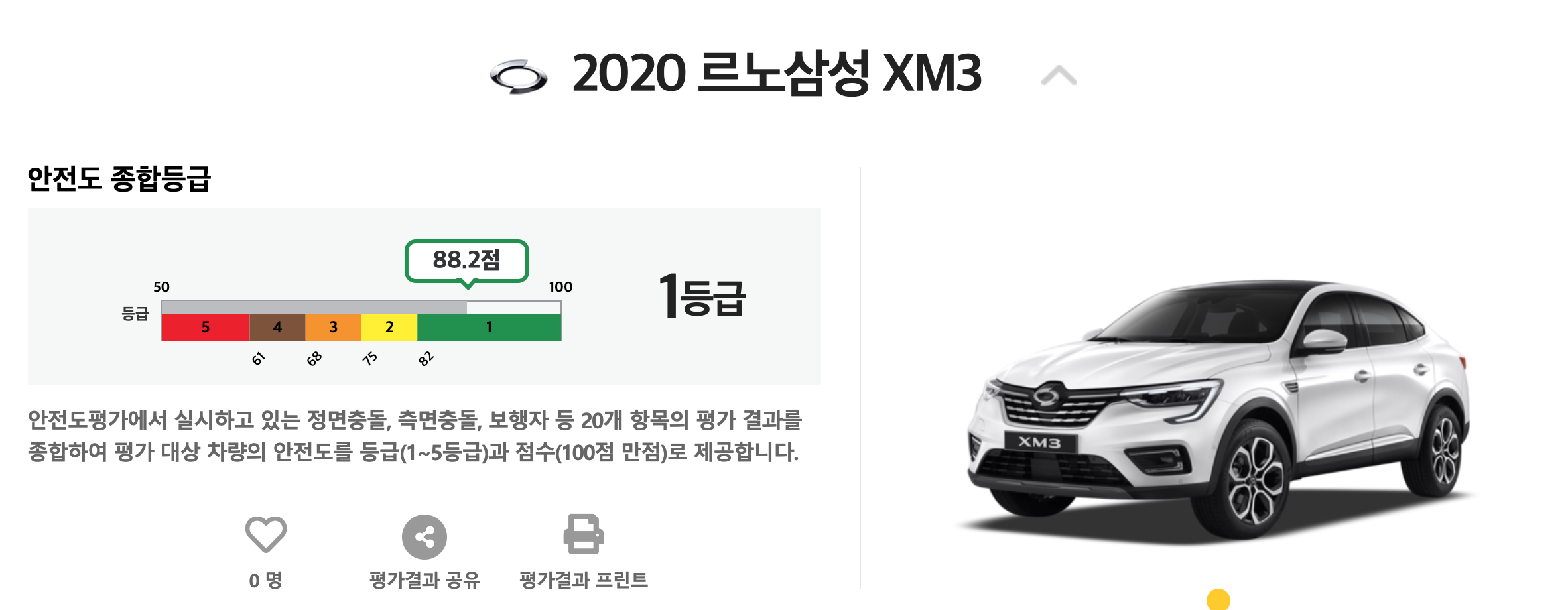르노삼성 XM3는 1등급중에서 상대적으로 가장 낮은 점수를 받았습니다.
