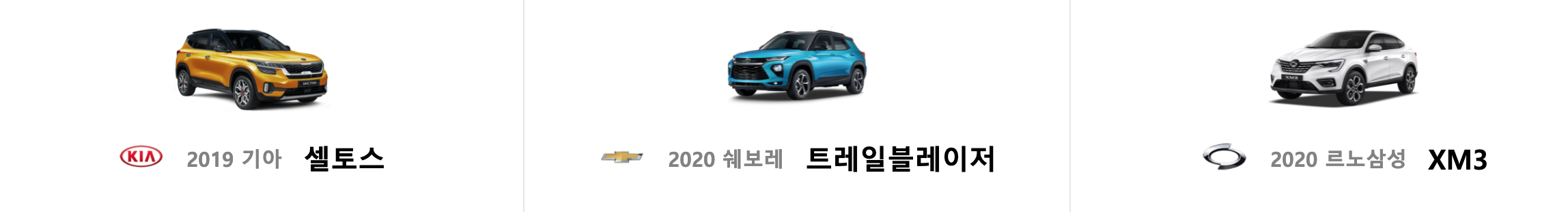 셀토스, 트레일블레이저, XM3가 바로 그 주인공입니다.