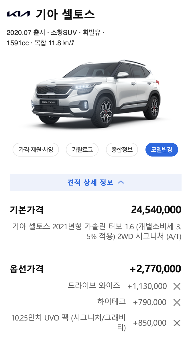 가격에 대한 자세한 내용은 셀토스 가격을 참고해주세요.