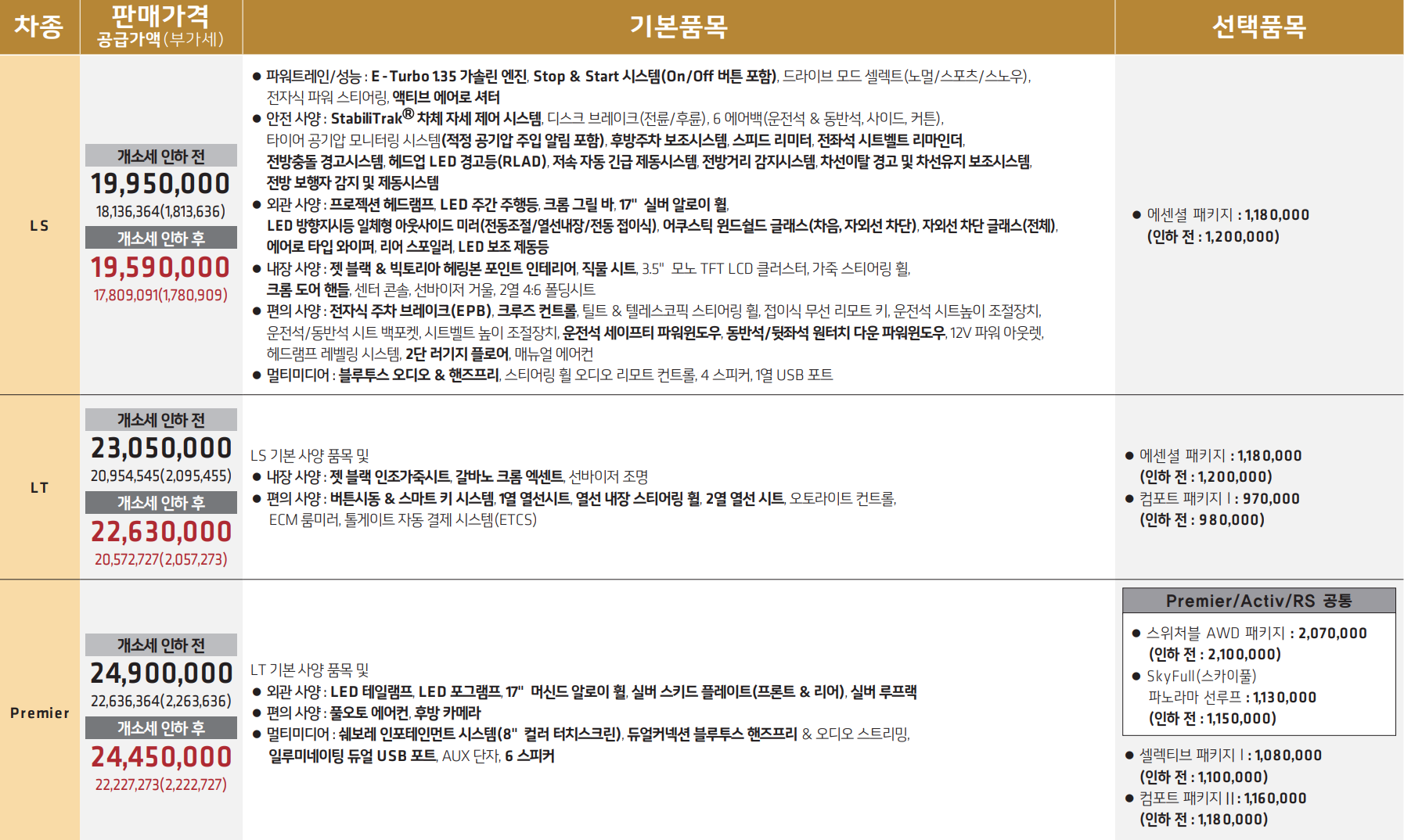 - 엔진 : E-Turbo 프라임 1.35 가솔린