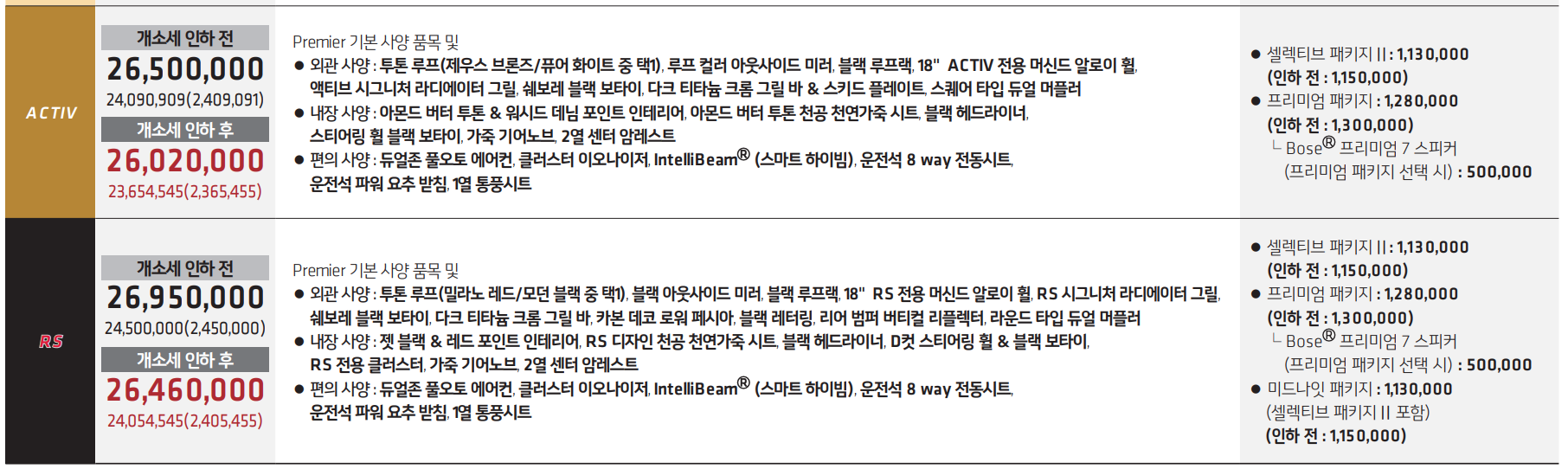 - 프리미어 가격 : 2445만원