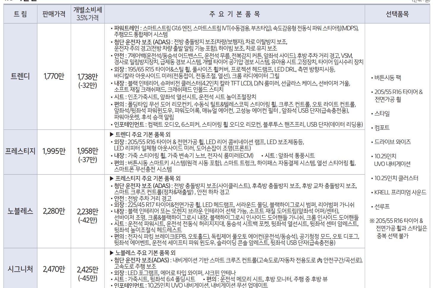 트림에 대한 차이는 있지만, 옵션에 대해선 최대한 많은 선택권을 준 점이 마음에 듭니다.