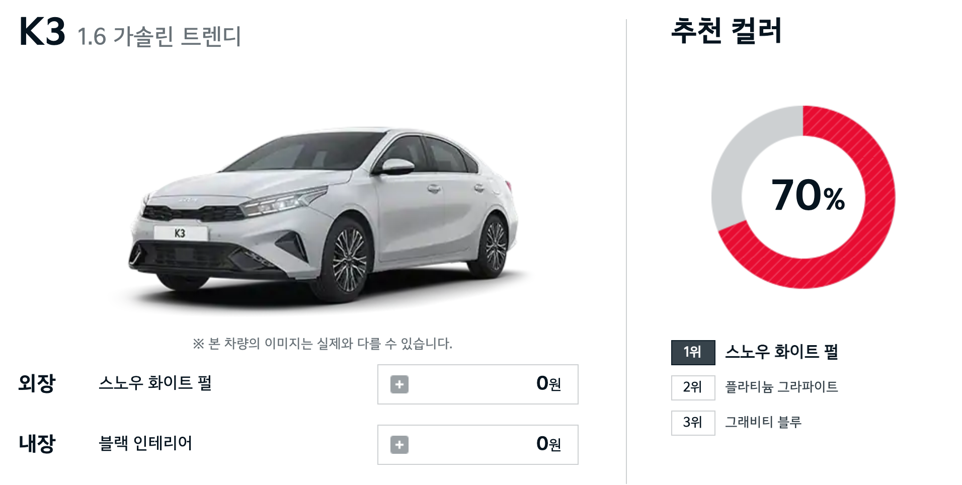 이런 이유일까요? K3 구매한 고객들의 인기컬러를 비교해보면