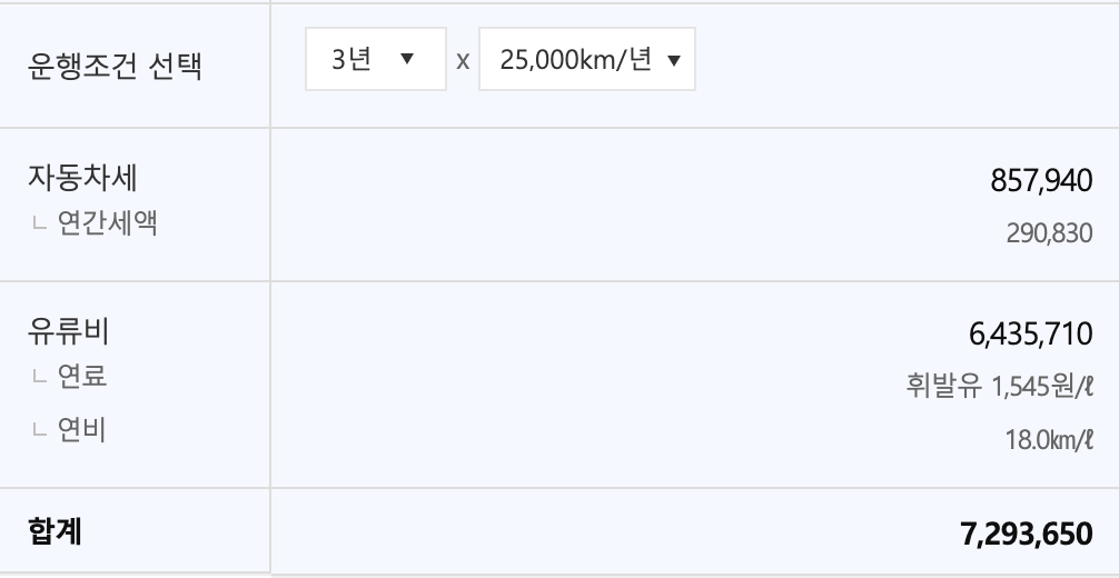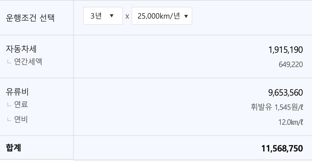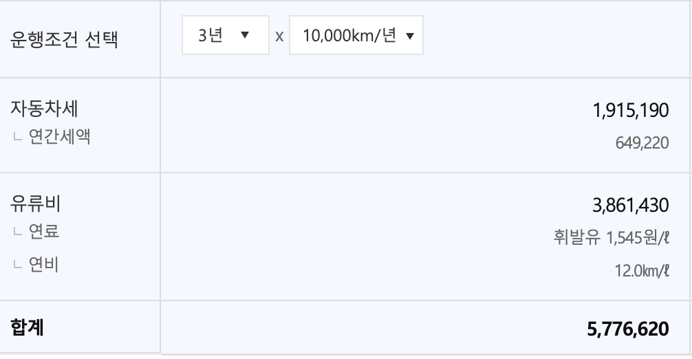 유류비 절감액은 234만원에 불과하여 일반 모델이 이득입니다.