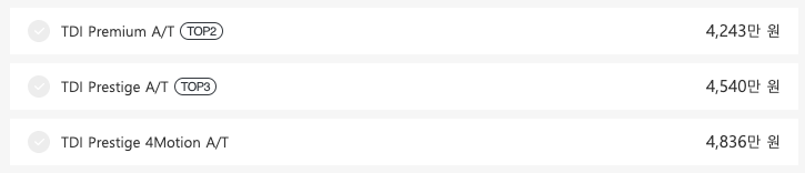 - 티구안 2.0 TDI 프리미엄 : 4243만원