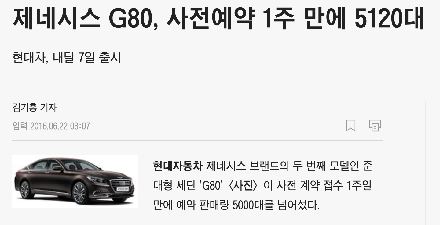 조선일보 제네시스 G80 사전예약 https://biz.chosun.com/site/data/html_dir/2016/06/21/2016062103528.html