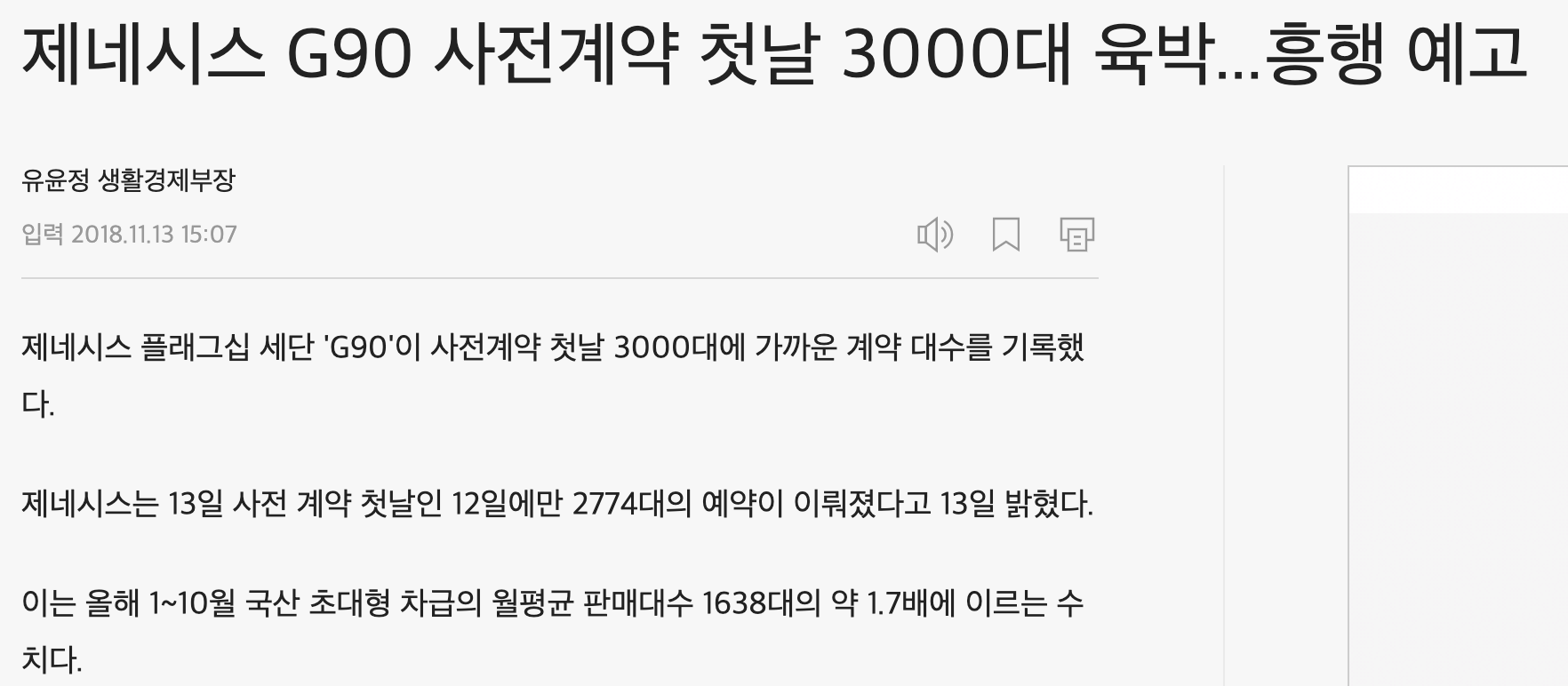 조선일보 제네시스 G90 사전예약 https://biz.chosun.com/site/data/html_dir/2018/11/13/2018111302541.html