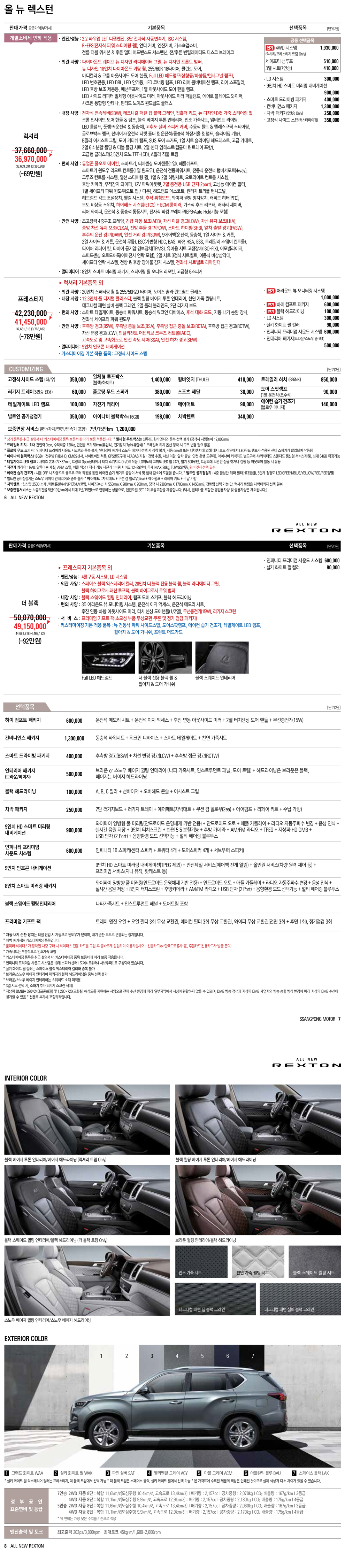 접은 글을 누르면 올 뉴 렉스턴 가격표를 확인하실 수 있습니다.