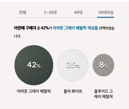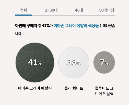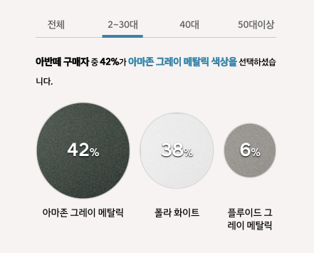 20~30대의 1위인 아마존 그레이 메탈릭은 42%가 선택했는데,