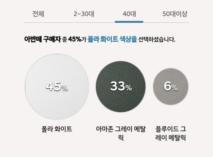 반면 40대의 경우는 다른 연령층과 달리 45%가 폴라 화이트로 나타났습니다.