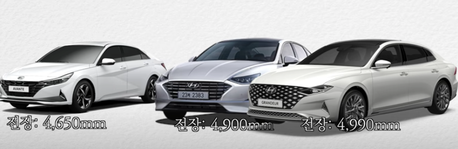 아반떼는 준중형, 쏘나타는 중형, 그랜저는 대형
