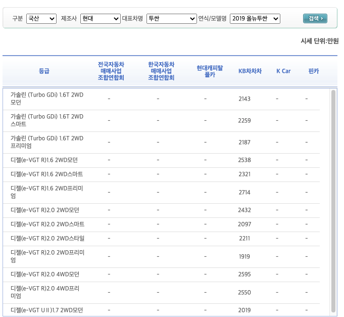 투싼 중고차 시세표