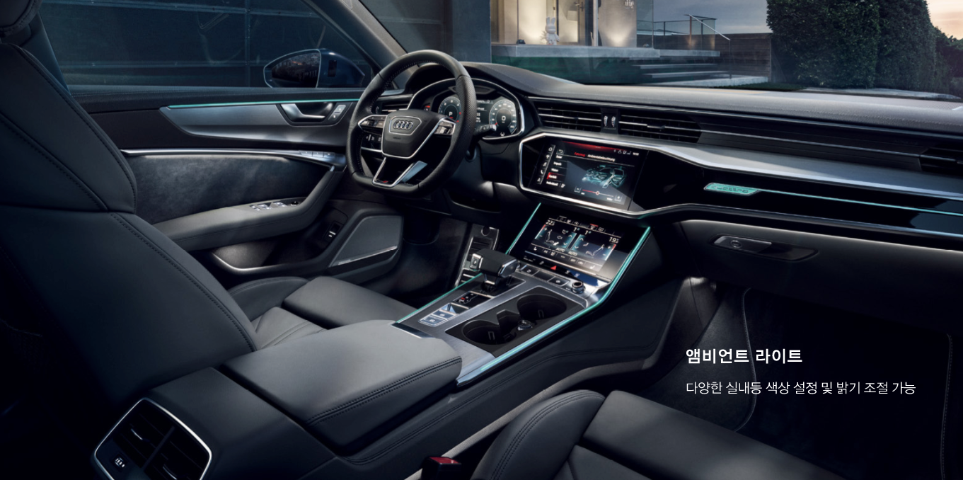 아래 사진에서 보이는 앰비언트 라이트는 다양한 실내등 색상을 설정하여 은은하고 부드러운 분위기 연출이 가능합니다.