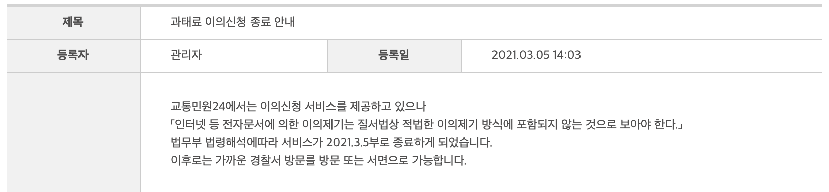 - 이의신청 방법 : 경찰서 방문 및 서면 제출